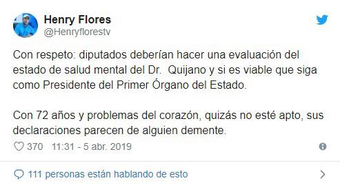 Sin embargo realizar dicha acusación solo por expresarse libremente como lo Hizo Quijano es irresponsable ya que no se cuenta con una prueba verídica de que el presidente de la Asamblea legislativa requiera de una intervención médica de este tipo.